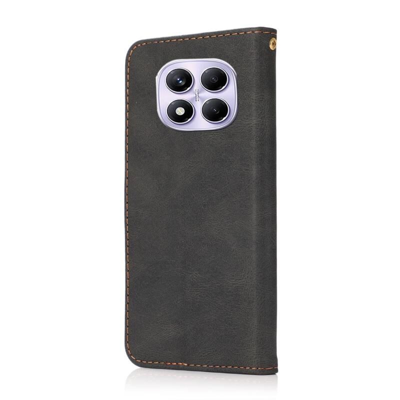 Θήκη τηλεφώνου από δέρμα με διχρωμία ραφής για Redmi Note 14 Pro 4G (Μαύρο καφέ)