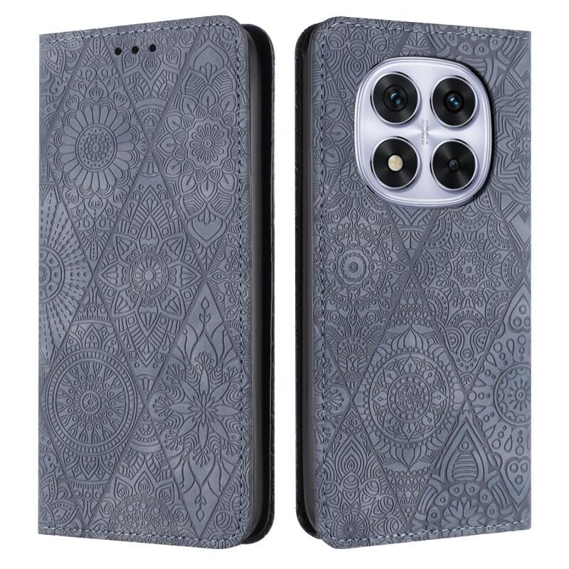 For Redmi Note 14 Pro 4G Ethnic Embossed Adsorption Leather Phone Case(Grey)