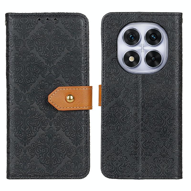 For Redmi Note 14 Pro 4G European Floral Embossed Leather Phone Case(Black)