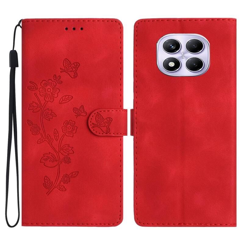 For Redmi Note 14 Pro 4G Flower Butterfly Embossing Pattern Leather Phone Case(Red)