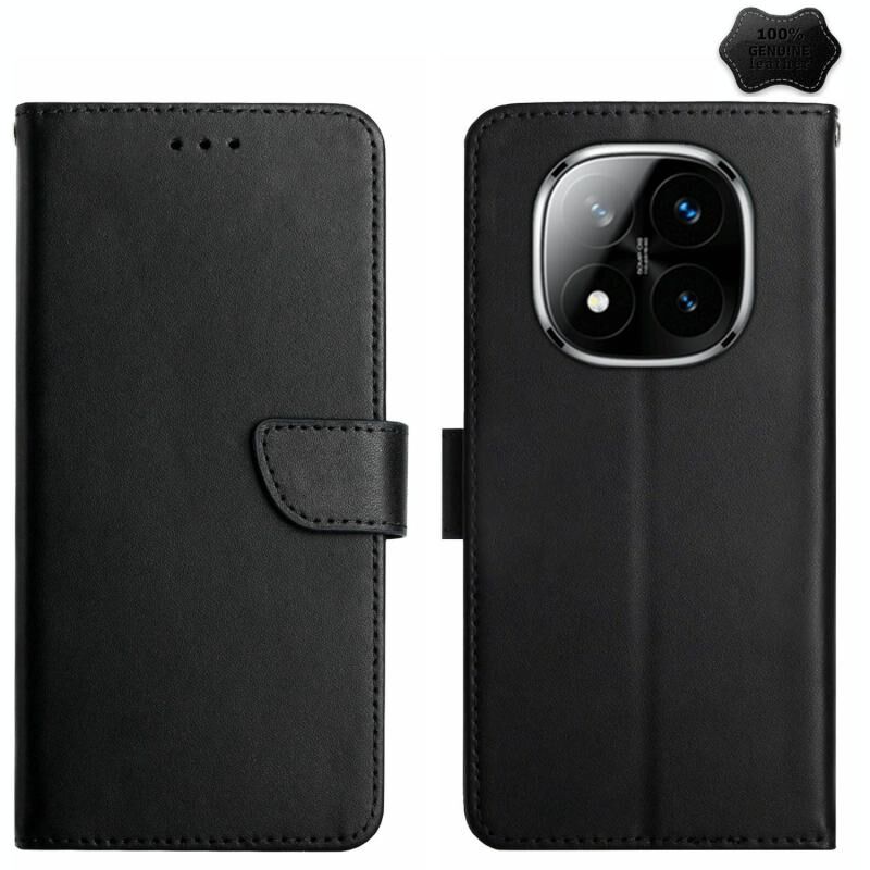 Θήκη τηλεφώνου Flip από γνήσιο δέρμα, ανθεκτική στα δακτυλικά αποτυπώματα για Redmi Note 14 Pro 4G (Μπλε)