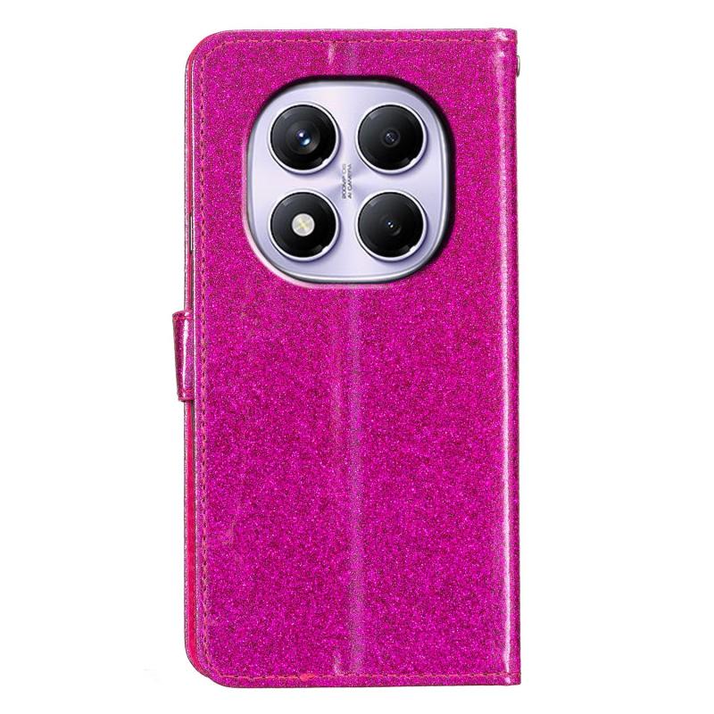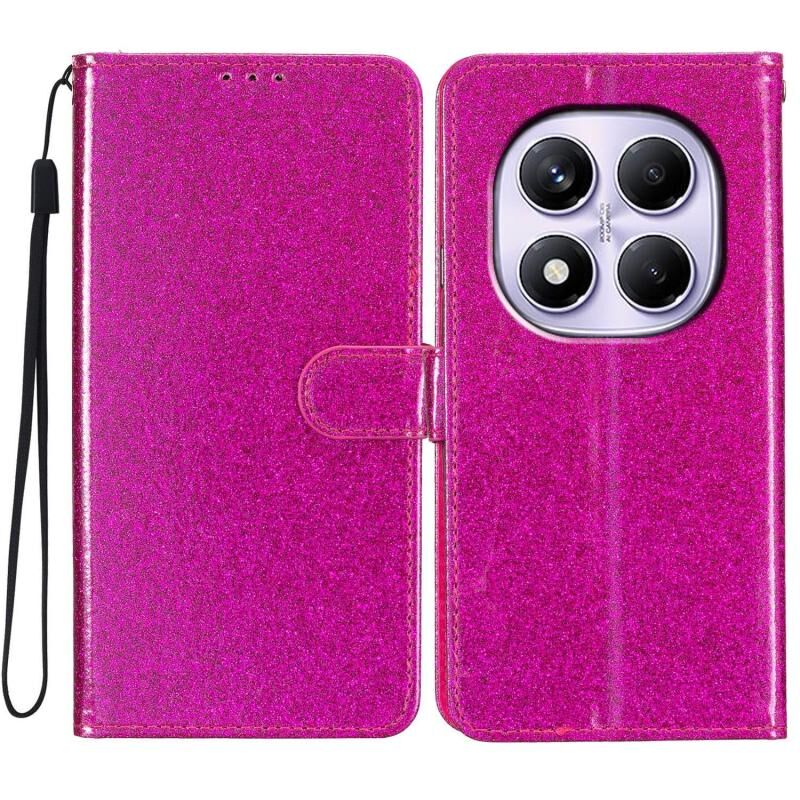 Θήκη τηλεφώνου από δέρμα με γκλίτερ σε στυλ βιβλίου για Redmi Note 14 Pro 4G (Ροζέ κόκκινο)