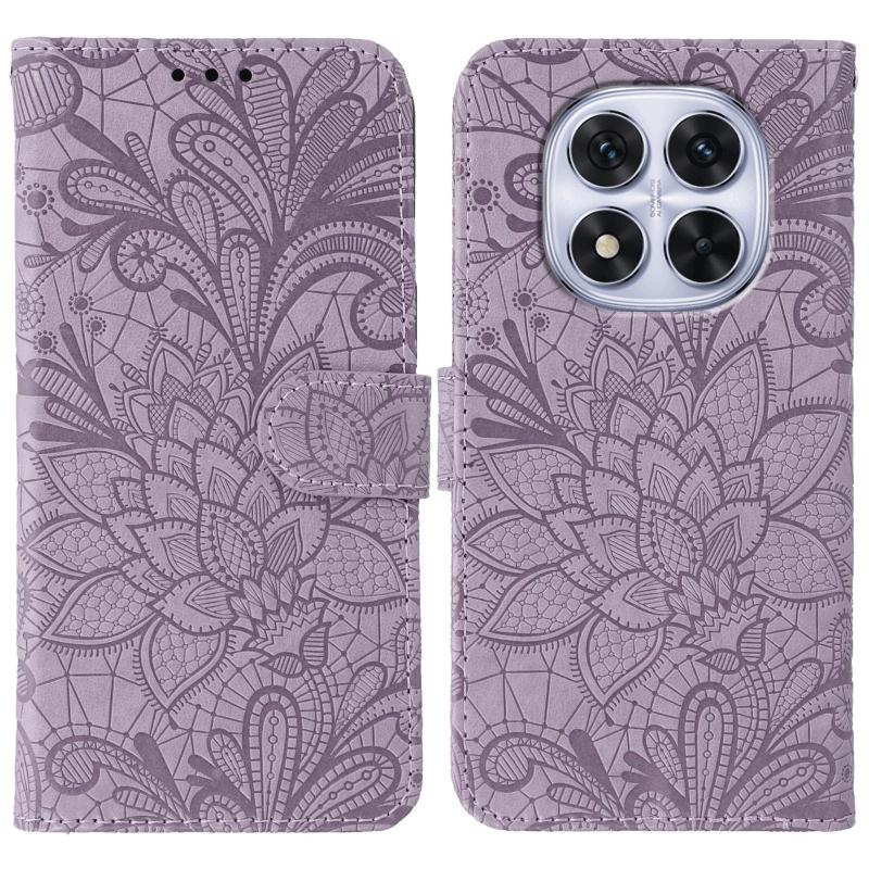For Redmi Note 14 Pro 4G Global Lace Flower Embossing Flip Leather Phone Case(Purple)