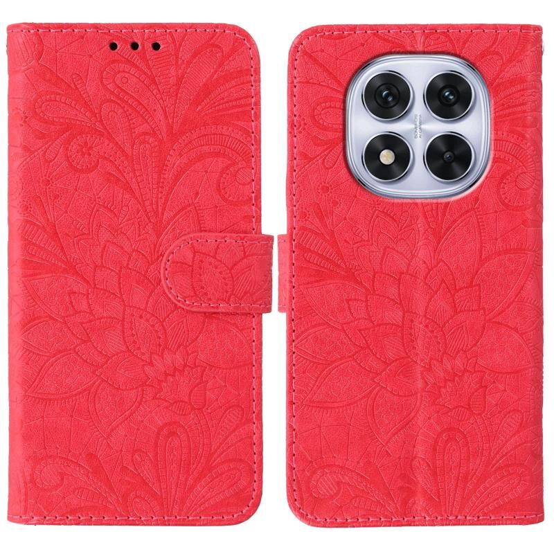 For Redmi Note 14 Pro 4G Global Lace Flower Embossing Flip Leather Phone Case(Red)