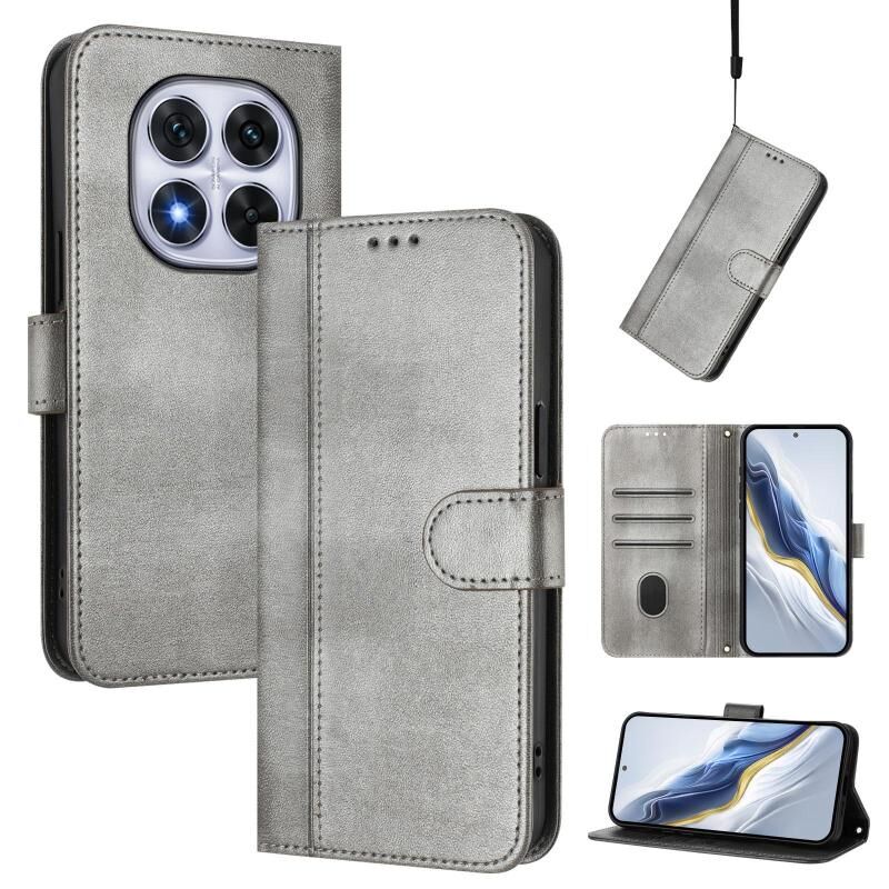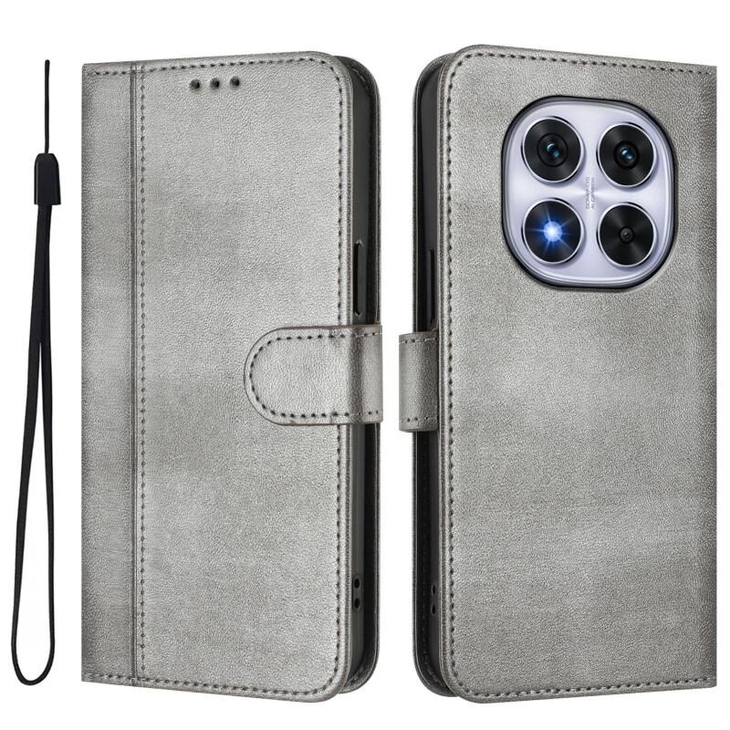 For Redmi Note 14 Pro 4G Global Line Splicing Buckle Retro Leather Phone Case(Grey)