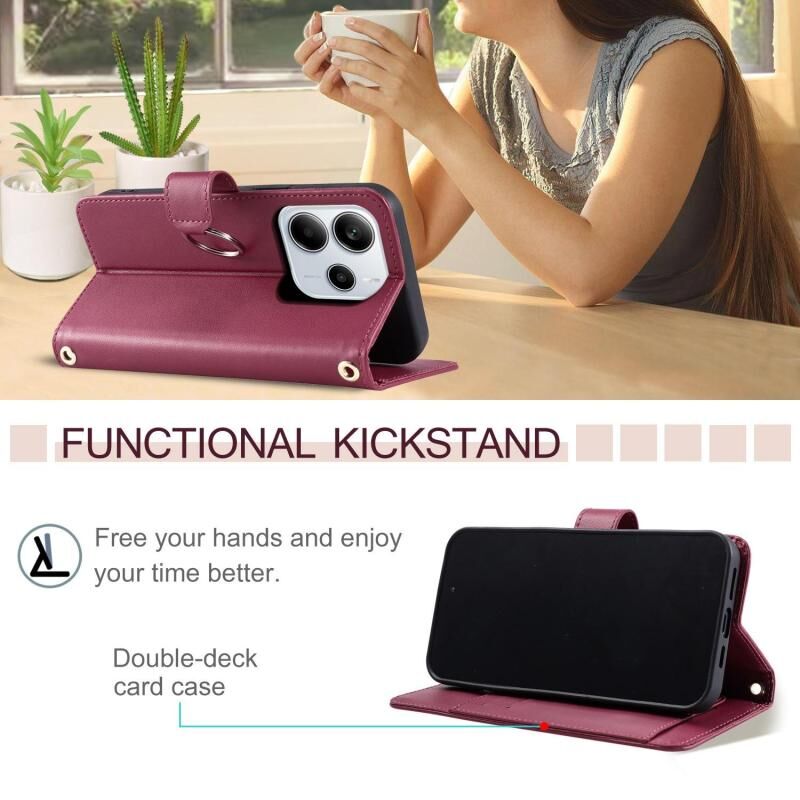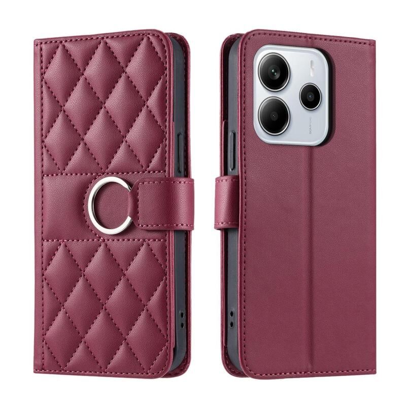 For Redmi Note 14 Pro 4G Global Ring Buckle Rhombic Leather Phone Case(Red)