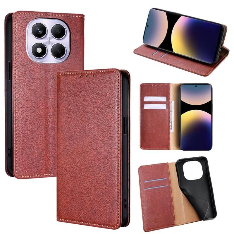 For Redmi Note 14 Pro 4G Gloss Oil Solid Color Magnetic Leather Phone Case(Brown)