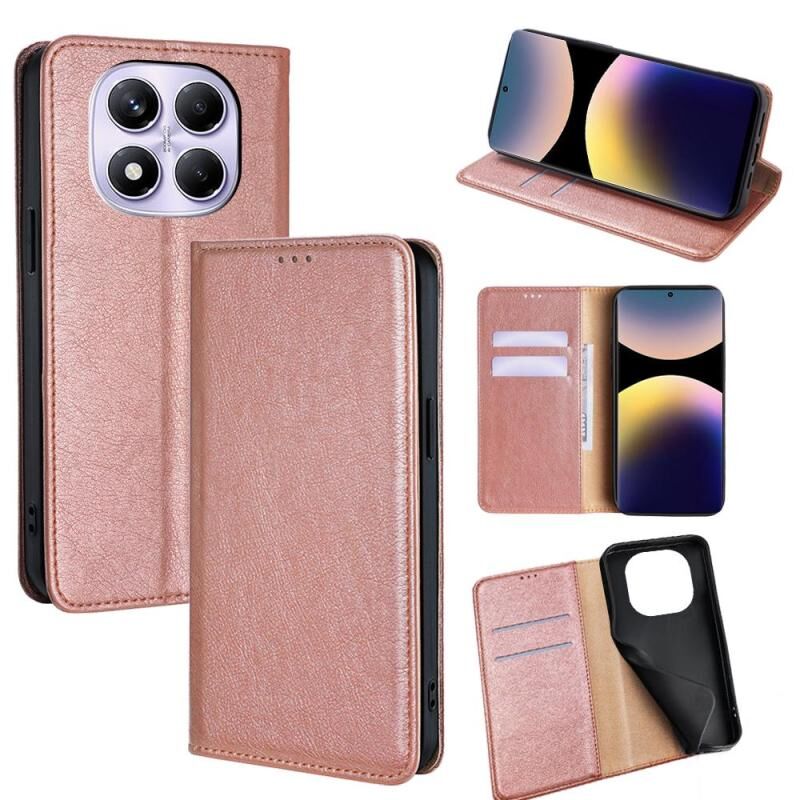 For Redmi Note 14 Pro 4G Gloss Oil Solid Color Magnetic Leather Phone Case(Rose Gold)