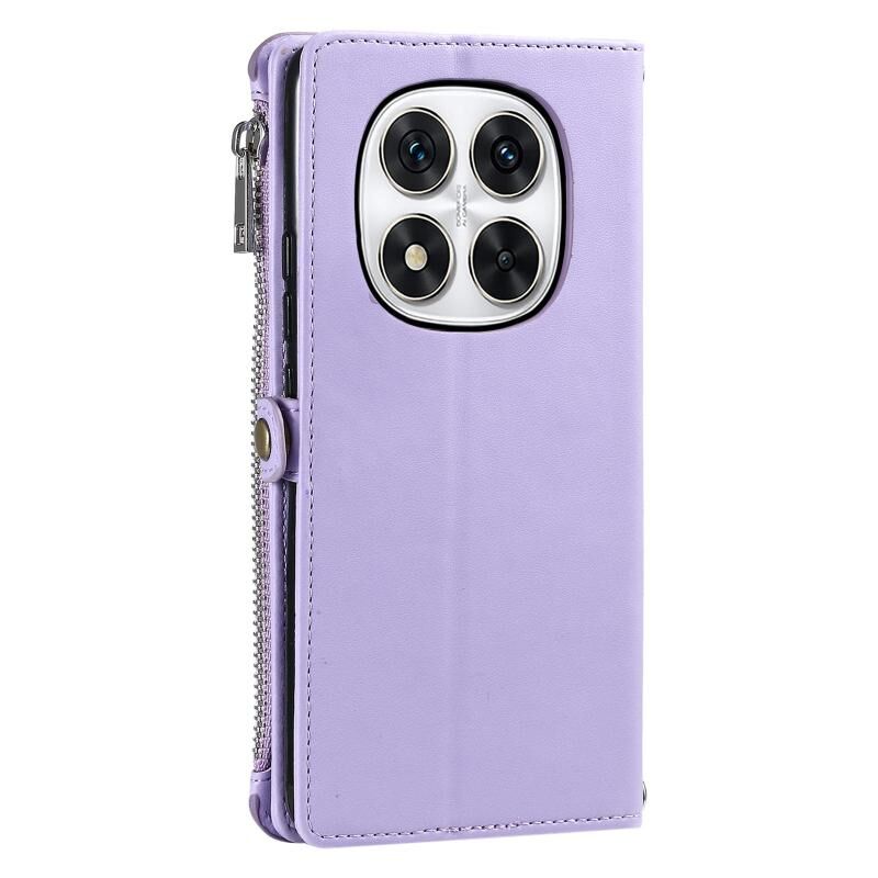 Για Redmi Σημείωση 14 Pro 4G δέρμα ραφή Multi-κάρτα Slot φερμουάρ υπόθεση τηλεφώνου (μωβ)