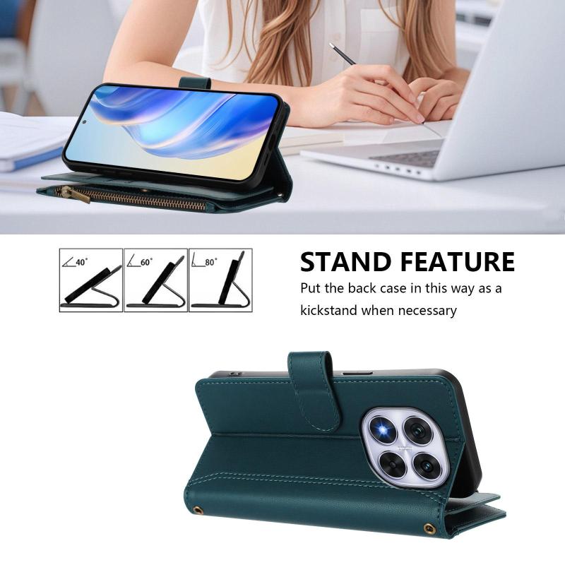 For Redmi Note 14 Pro 4G Magnetic Closure 9 Card Slots Zipper Leather Case with Hand Strap(Dark Green)