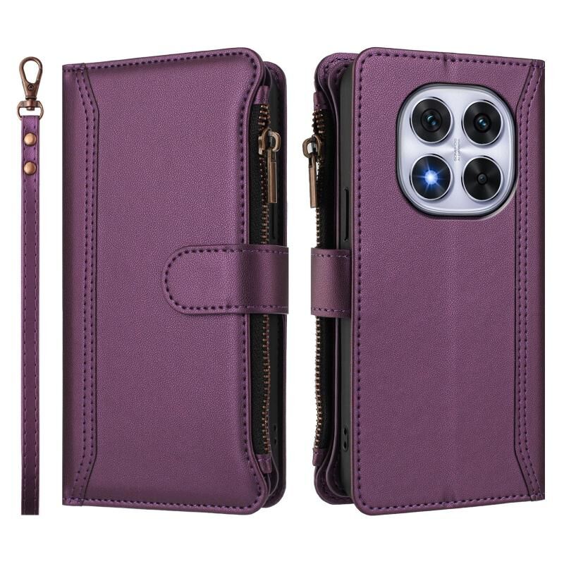For Redmi Note 14 Pro 4G Magnetic Closure 9 Card Slots Zipper Leather Case with Hand Strap(Purple)