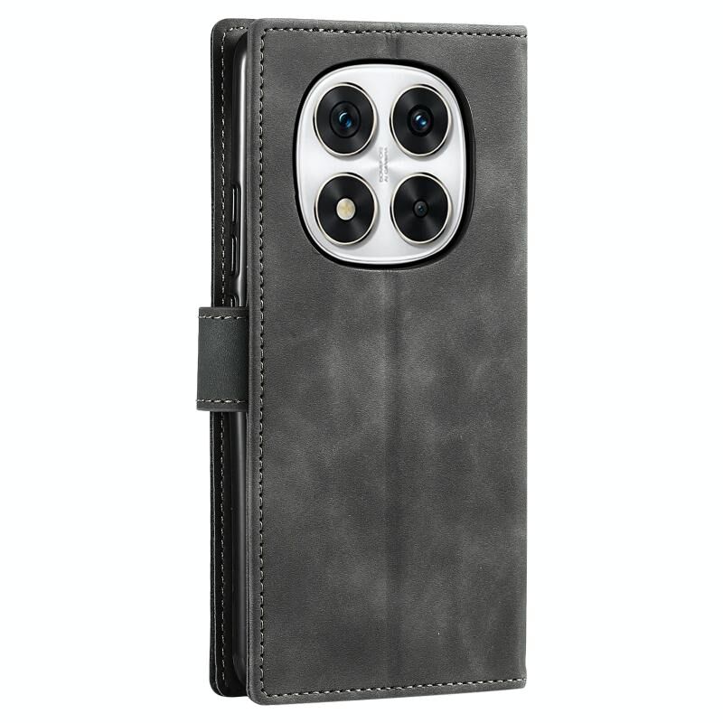 Θήκη τηλεφώνου από δέρμα μοσχαριού με υφή, ραφής, αίσθηση νυχιού για Redmi Note 14 Pro 4G (Γκρι)