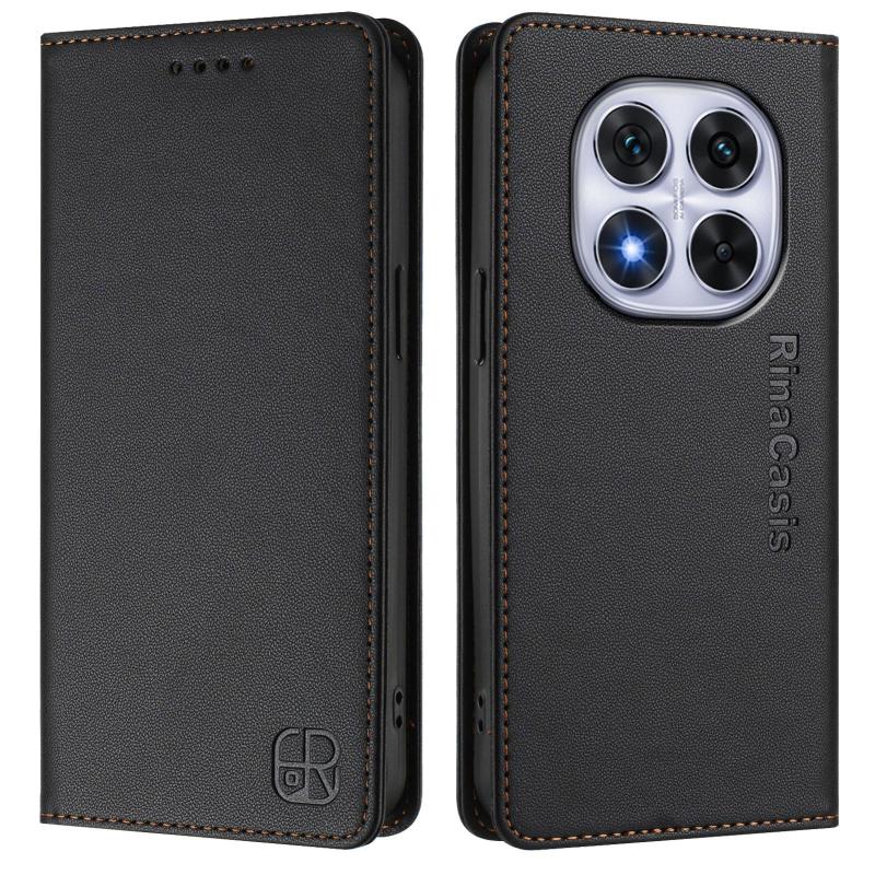 For Redmi Note 14 Pro 4G RC01 Dual-Folded Magnetic Suction RFID Leather Phone Case(Black)