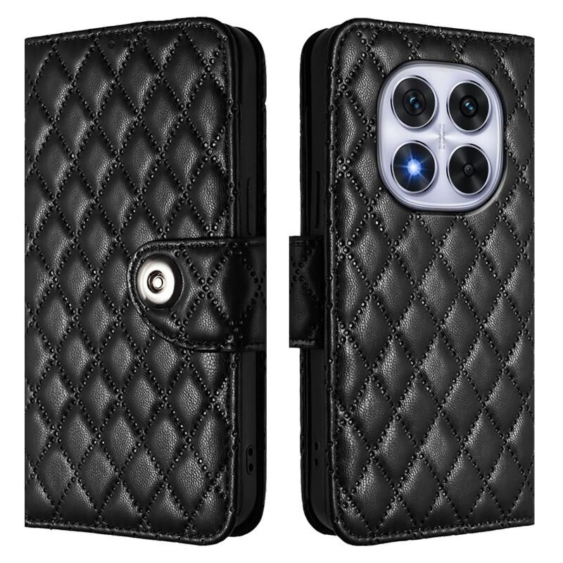 For Redmi Note 14 Pro 4G Rhombic Texture Flip Leather Phone Case with Lanyard(Black)