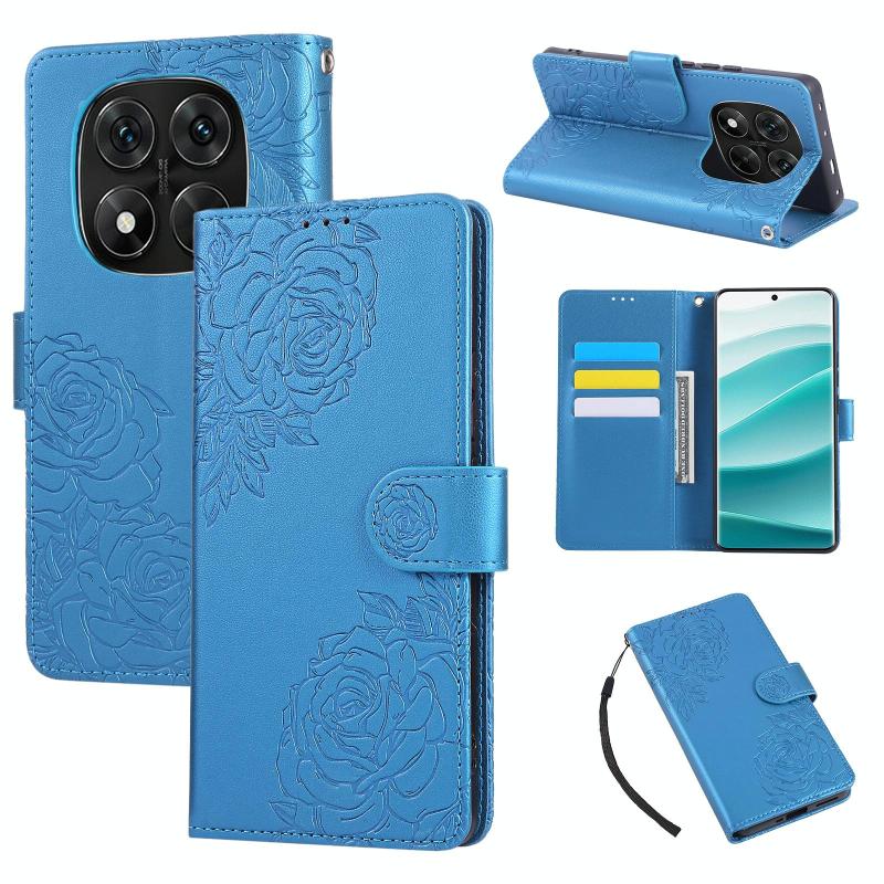 For Redmi Note 14 Pro 4G Rose Flower Embossed 3-Card Slots Leather Phone Case(Blue)