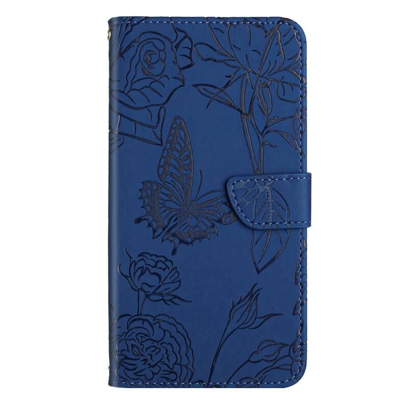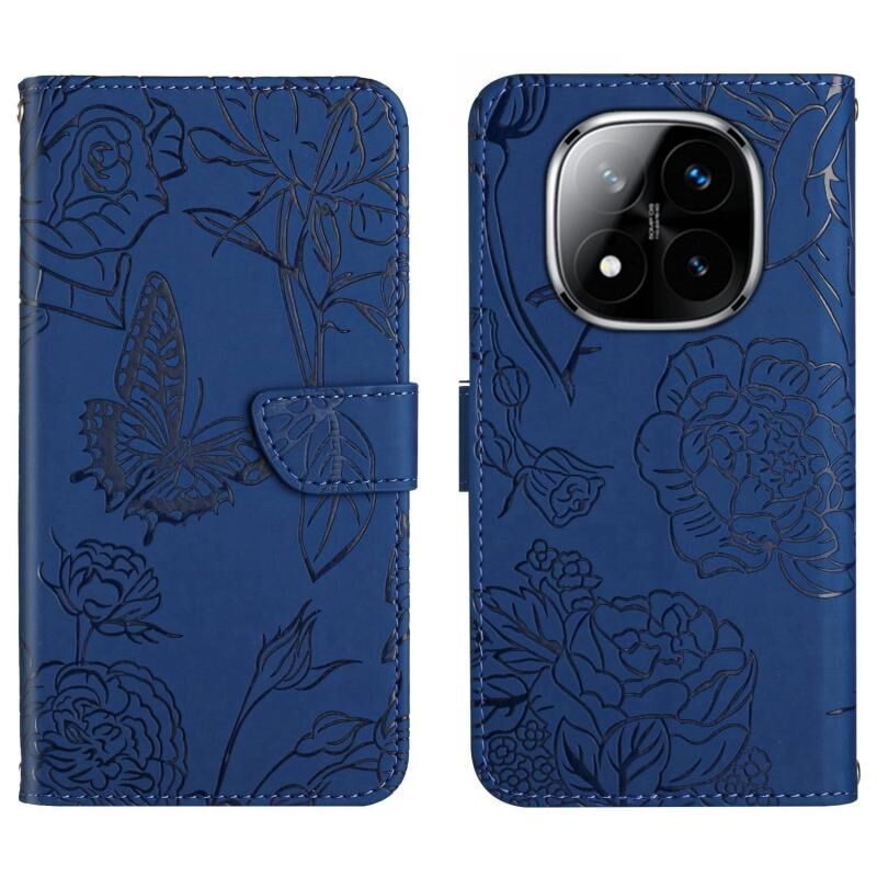 Θήκη τηλεφώνου από δέρμα με ανάγλυφο σχέδιο πεταλούδας και αίσθηση δέρματος για Redmi Note 14 Pro 4G (Μπλε)