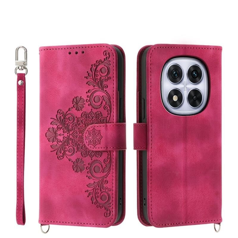 Θήκη τηλεφώνου από δέρμα με ανάγλυφα λουλούδια και υφή δέρματος για Redmi Note 14 Pro 4G (Κρασοκόκκινο)