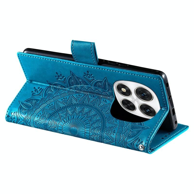 Θήκη τηλεφώνου από δέρμα με ανάγλυφο σχέδιο Totem Flower για Redmi Note 14 Pro 4G με κορδόνι (Χρυσό)