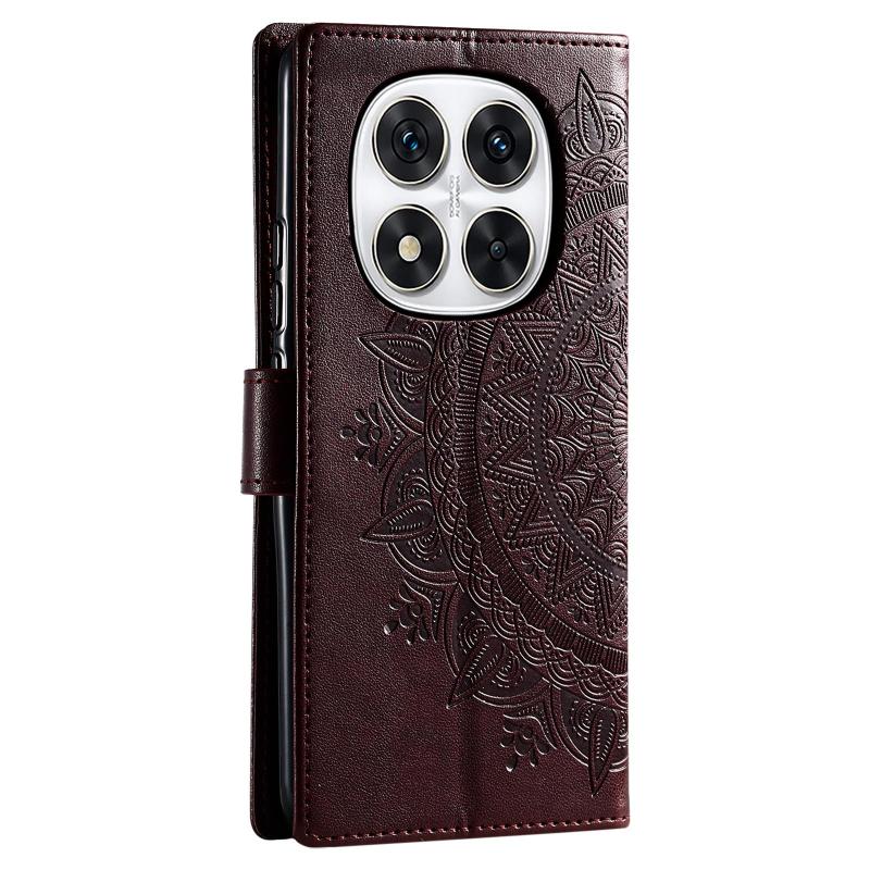 For Redmi Note 14 Pro 4G Totem Flower Embossed Leather Phone Case with Lanyard(Brown)