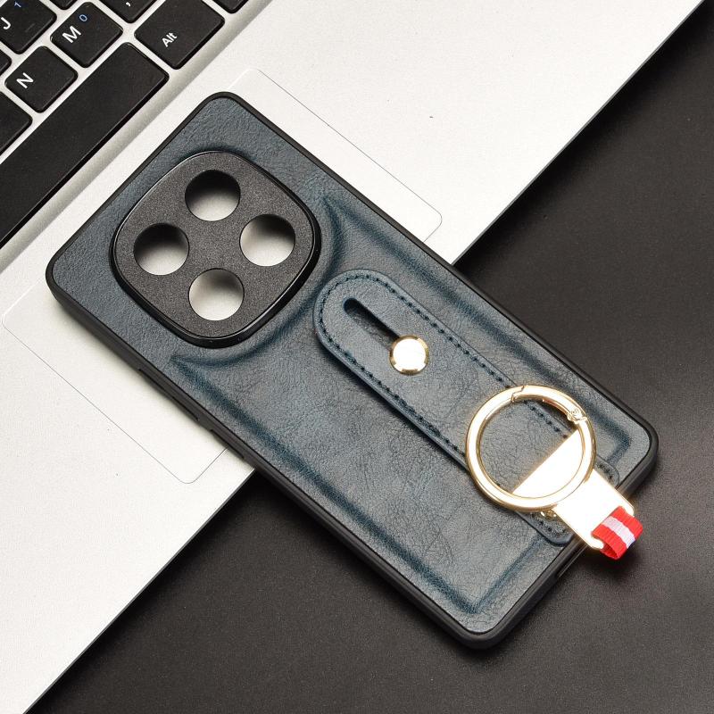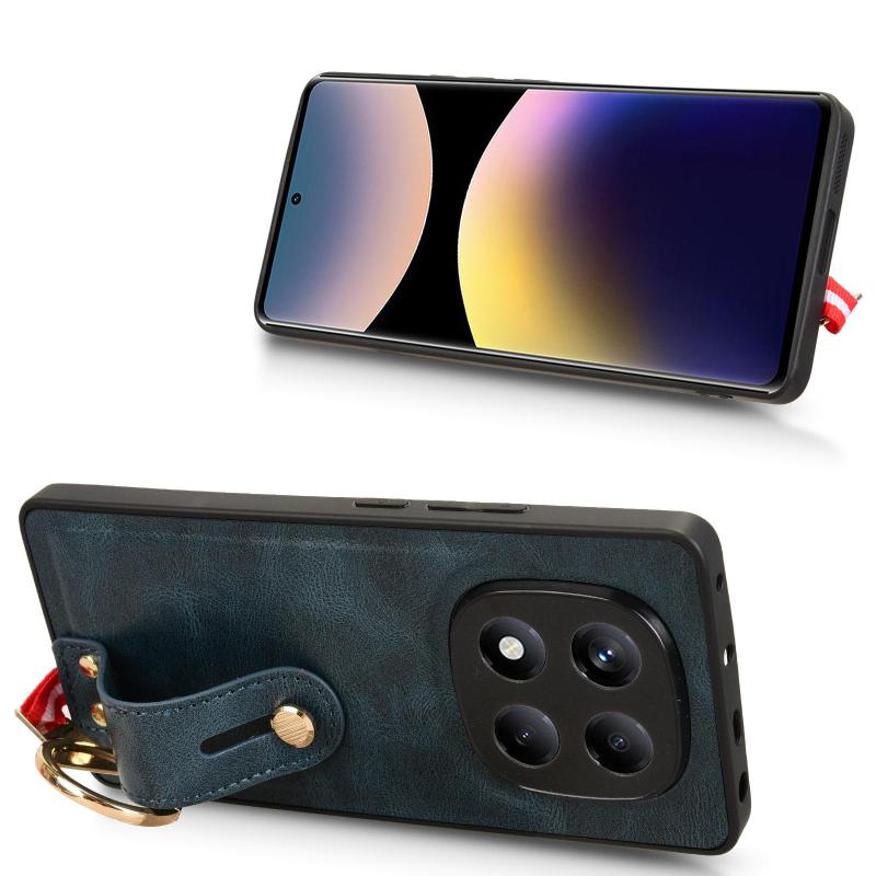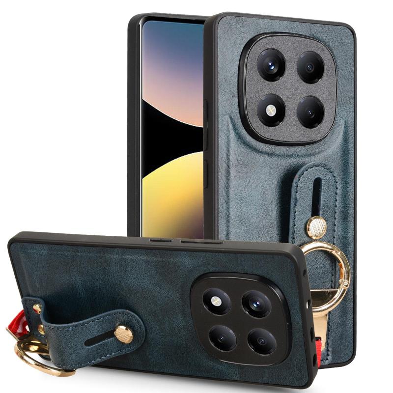 For Redmi Note 14 Pro 4G Wristband Leather Back Phone Case(Blue)