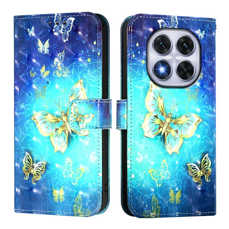 For Redmi Note 14 Pro 5G / 14 Pro+ 5G 3D Painting Horizontal Flip Leather Phone Case(Golden Butterfly)