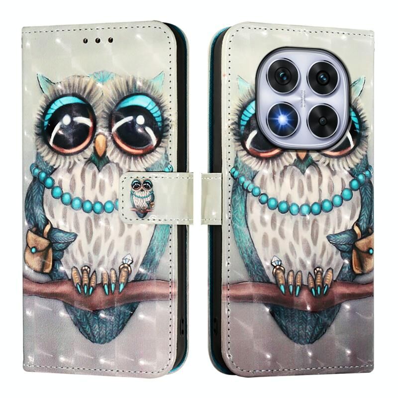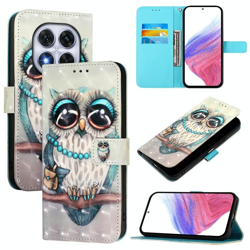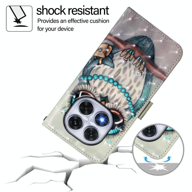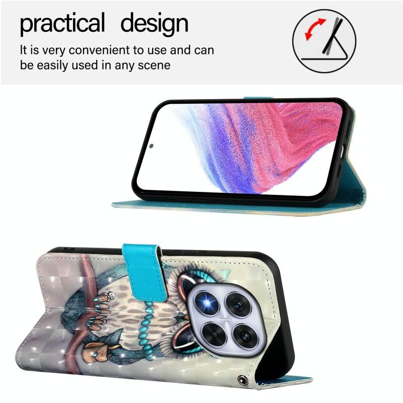Θήκη τηλεφώνου από δέρμα με οριζόντιο άνοιγμα και τρισδιάστατη ζωγραφική για Redmi Note 14 Pro 5G / 14 Pro+ 5G (Γκρι Γεράκι)