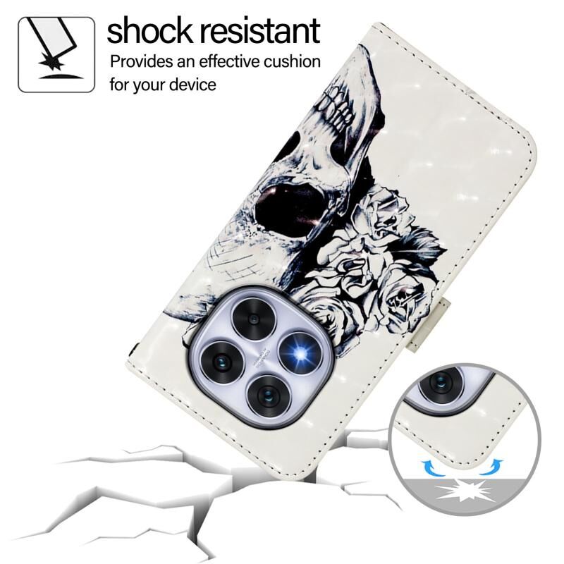 Θήκη τηλεφώνου από δέρμα με οριζόντιο άνοιγμα και τρισδιάστατη ζωγραφική για Redmi Note 14 Pro 5G / 14 Pro+ 5G (Κρανίο)