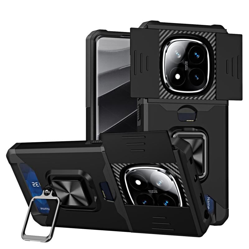 For Redmi Note 14 Pro 5G / 14 Pro+ 5G Camera Shield Card Slot PC+TPU Phone Case(Black)