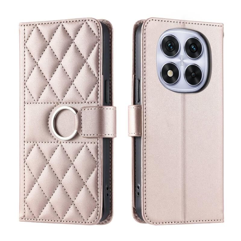 For Redmi Note 14 Pro 5G / 14 Pro+ 5G Ring Buckle Rhombic Leather Phone Case(Rose Gold)