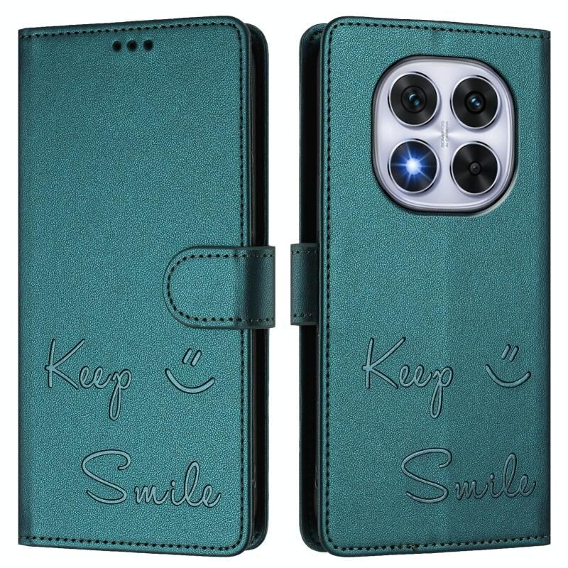 Για Redmi Note 14 Pro 5G / 14 Pro + 5G 5G Smile ανάγλυφο RFID δερμάτινη θήκη τηλεφώνου (Peacock Green)