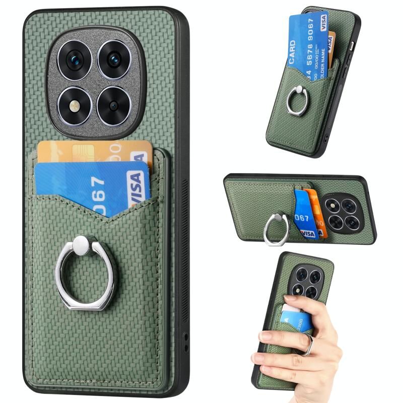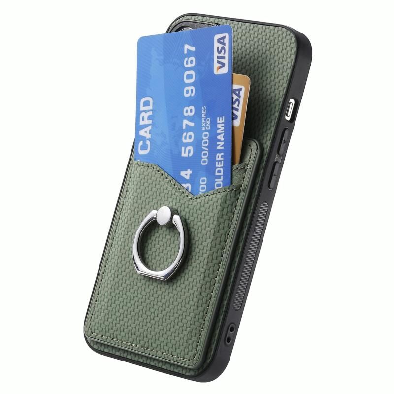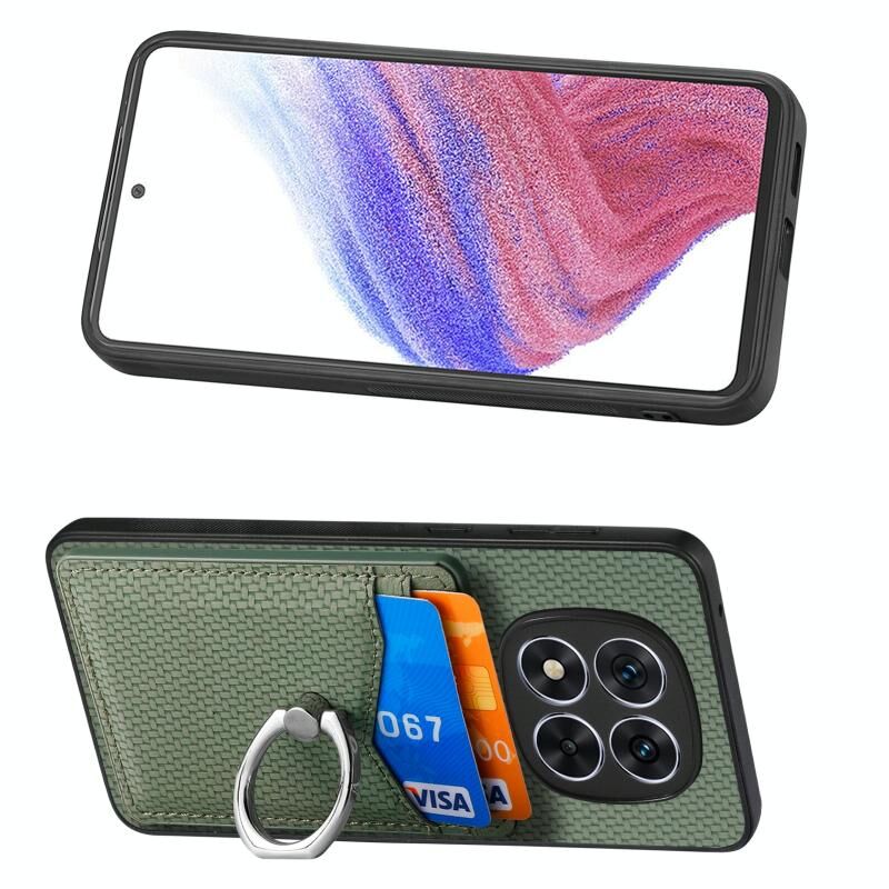 Για Redmi Σημείωση 14 Pro 5G Carbon Fiber κάρτα πορτοφόλι δαχτυλίδι τηλέφωνο υπόθεση (πράσινο)