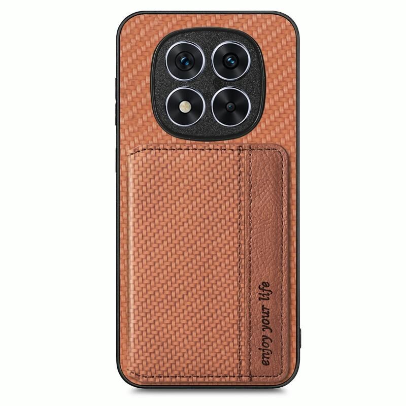 Για Redmi Σημείωση 14 Pro 5G ινών άνθρακα μαγνητική κάρτα τσάντα τηλέφωνο υπόθεση (καφέ)