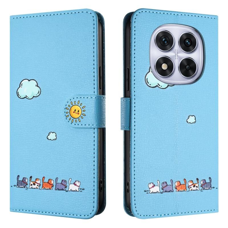 For Redmi Note 14 Pro 5G Cartoon Cats Leather Phone Case(Blue)
