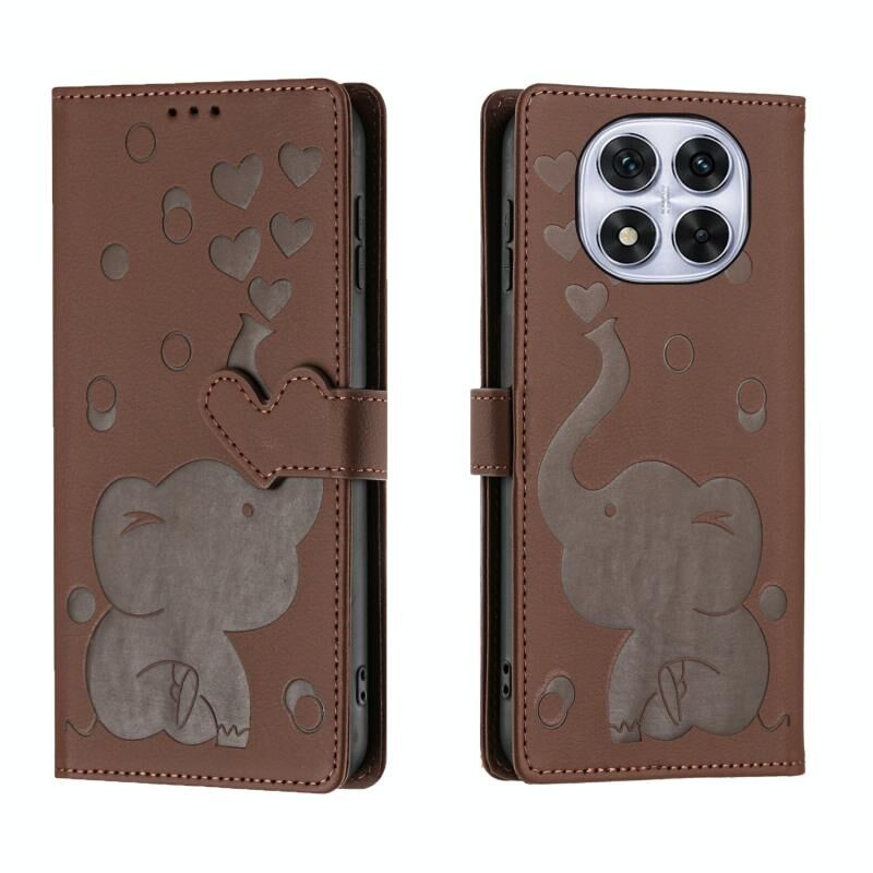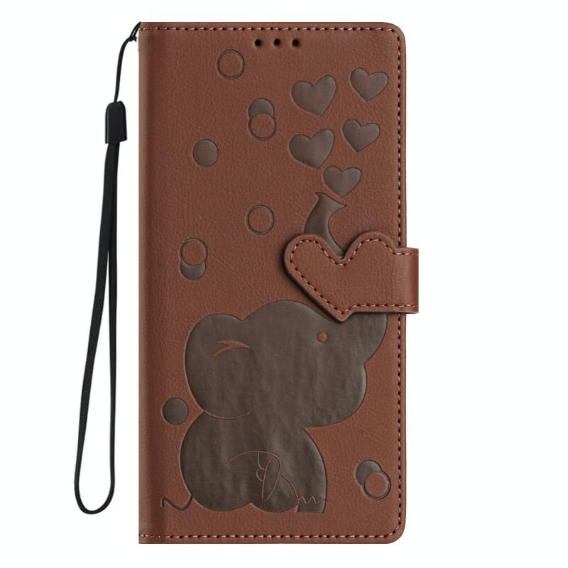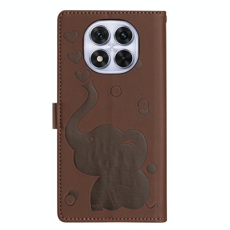 Θήκη τηλεφώνου από δέρμα με ανάγλυφο σχέδιο καρτούν ελέφαντα για Redmi Note 14 Pro 5G (Καφέ)
