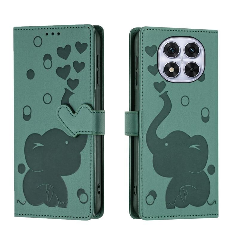 Θήκη τηλεφώνου από δέρμα με ανάγλυφο σχέδιο καρτούν ελέφαντα για Redmi Note 14 Pro 5G (πράσινο)
