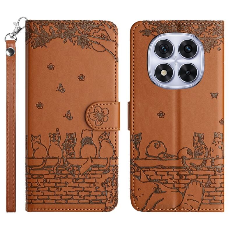 Θήκη τηλεφώνου από δέρμα με ανάγλυφο σχέδιο γάτας για Brownmi Note 14 Pro 5G με κορδόνι (Κόκκινο)