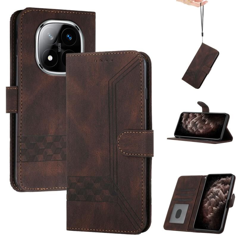 Για Redmi Note 14 Pro + 5G Cubic Skin Feel Flip δέρμα τηλέφωνο υπόθεση (καφέ)