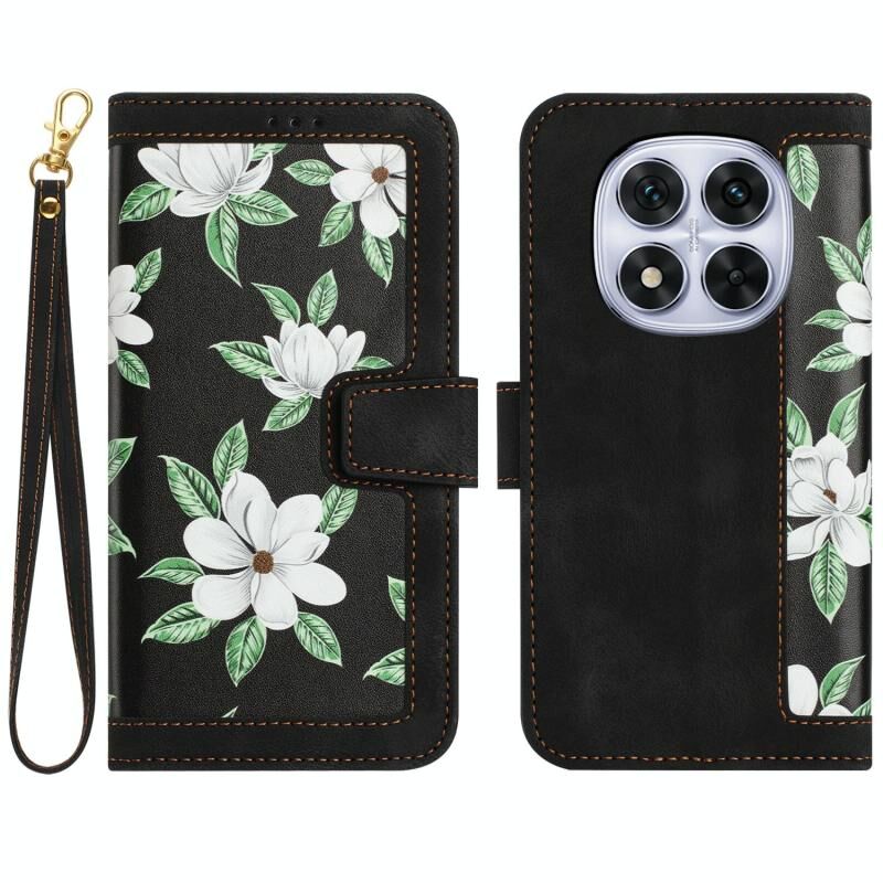 Θήκη τηλεφώνου από δέρμα με λουλουδάτο σχέδιο για Redmi Note 14 Pro+ 5G με κορδόνι (Πράσινο)