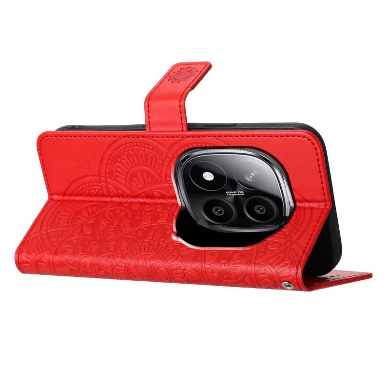 Θήκη τηλεφώνου από δέρμα με ανάγλυφο λουλούδι για Redmi Note 14 Pro 5G (Κόκκινο)
