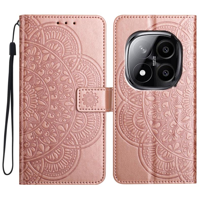 For Redmi Note 14 Pro+ 5G Flower Embossed Leather Phone Case(Rose Gold)