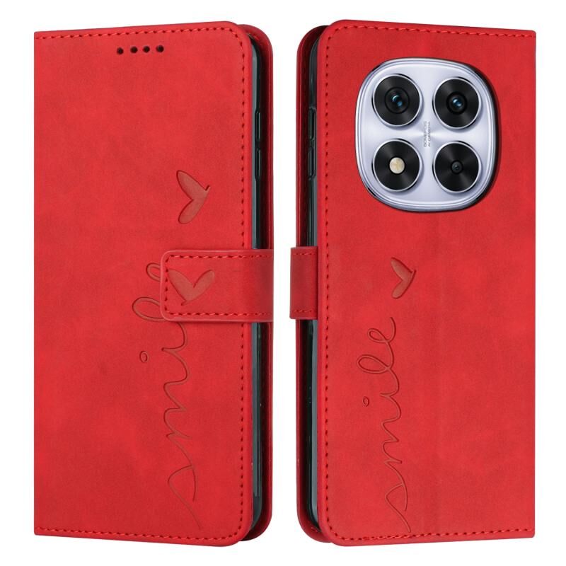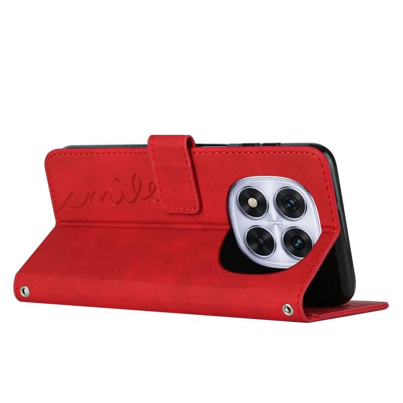 For Redmi Note 14 Pro 5G Global Skin Feel Heart Embossed Leather Phone Case with Long Lanyard(Red)