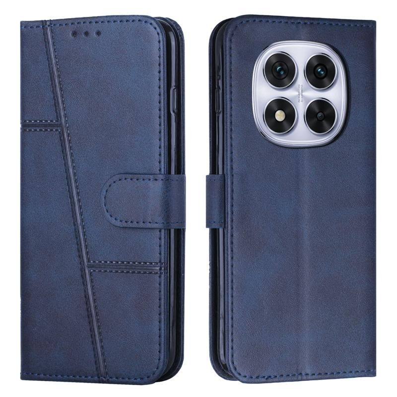 For Redmi Note 14 Pro 5G Global Stitching Calf Texture Buckle Leather Phone Case(Blue)