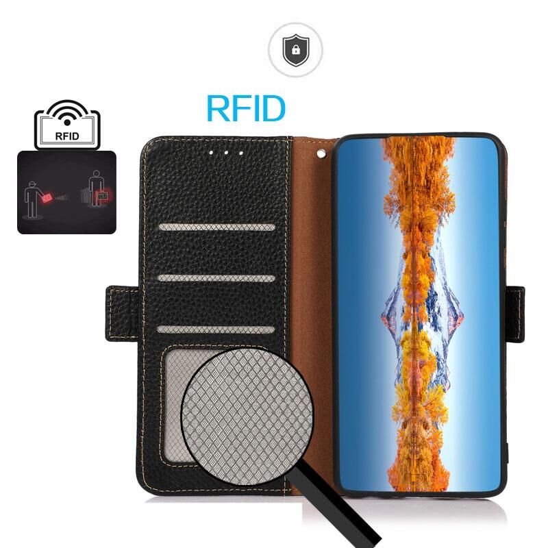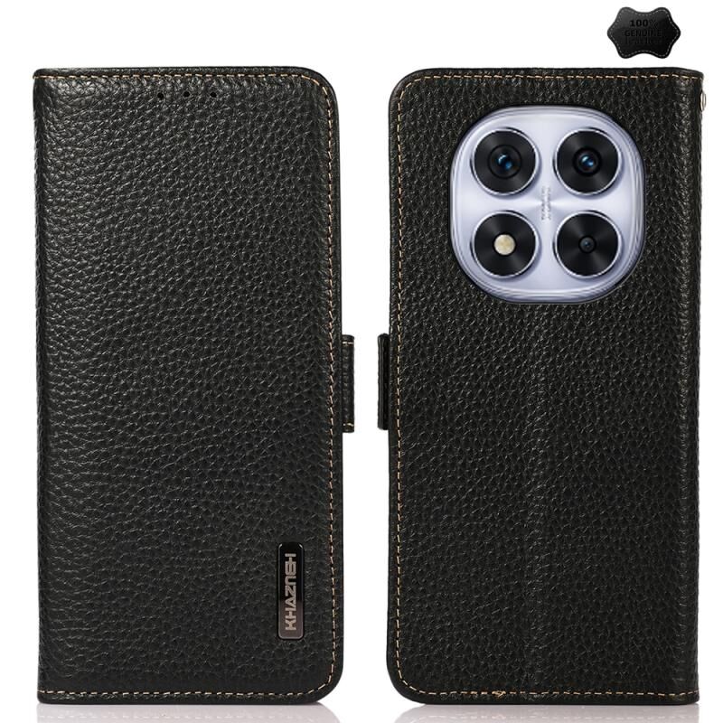Θήκη τηλεφώνου με μαγνητικό κλείσιμο και γνήσιο δέρμα Litchi για Redmi Note 14 Pro 5G KHAZNEH (Μαύρο)