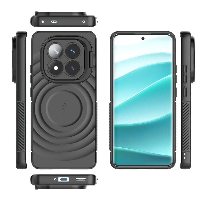 Για Redmi Note 14 Pro+ 5G Βάση Στερέωσης Φακού Κυματοειδής Θήκη Τηλεφώνου MagSafe (Μαύρο)