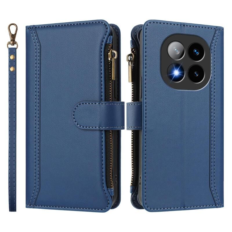 For Redmi Note 14 Pro+ 5G Magnetic Closure 9 Card Slots Zipper Leather Case with Hand Strap(Dark Blue)