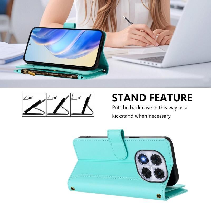 For Redmi Note 14 Pro 5G Magnetic Closure 9 Card Slots Zipper Leather Case with Hand Strap(Mint Green)