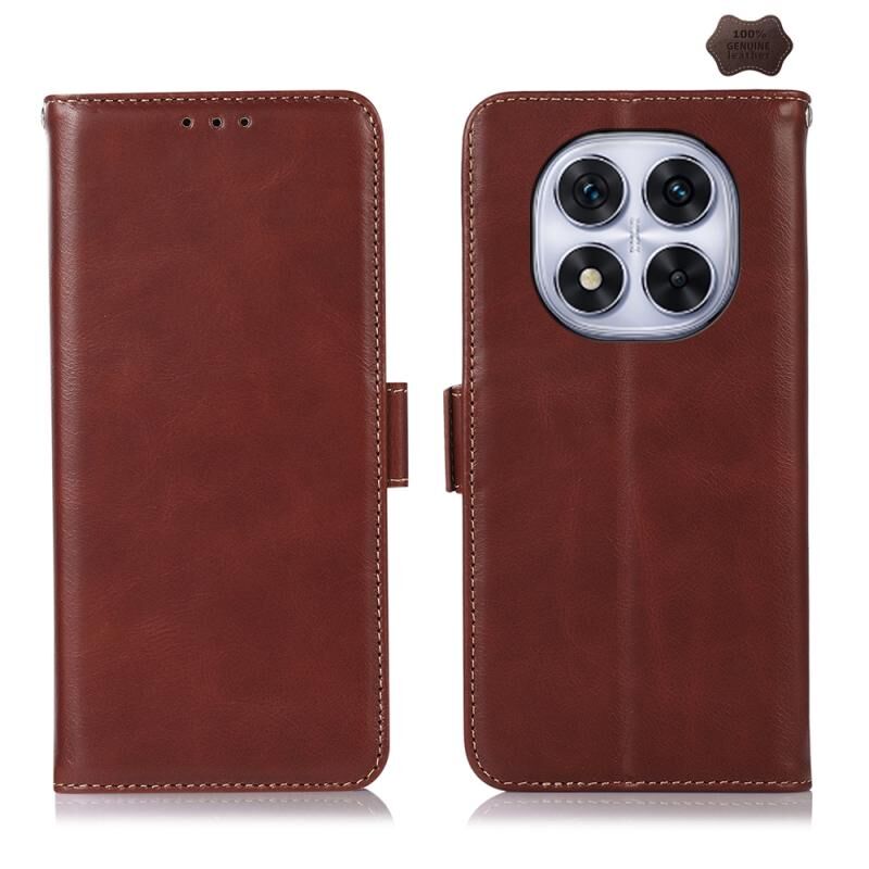 For Redmi Note 14 Pro 5G Magnetic Crazy Horse Texture Genuine Leather RFID Phone Case(Brown)