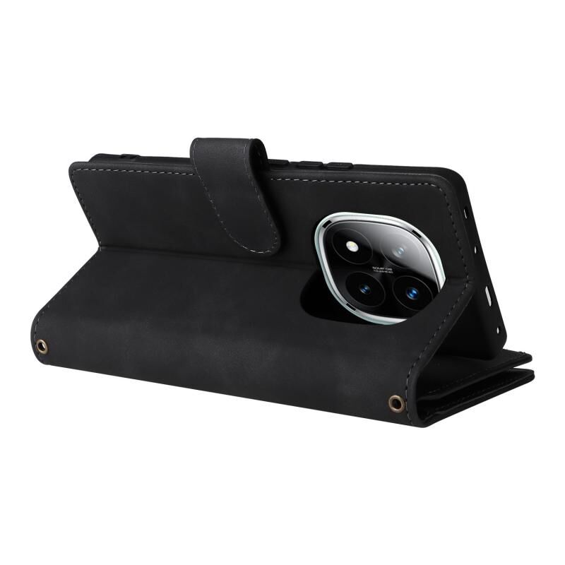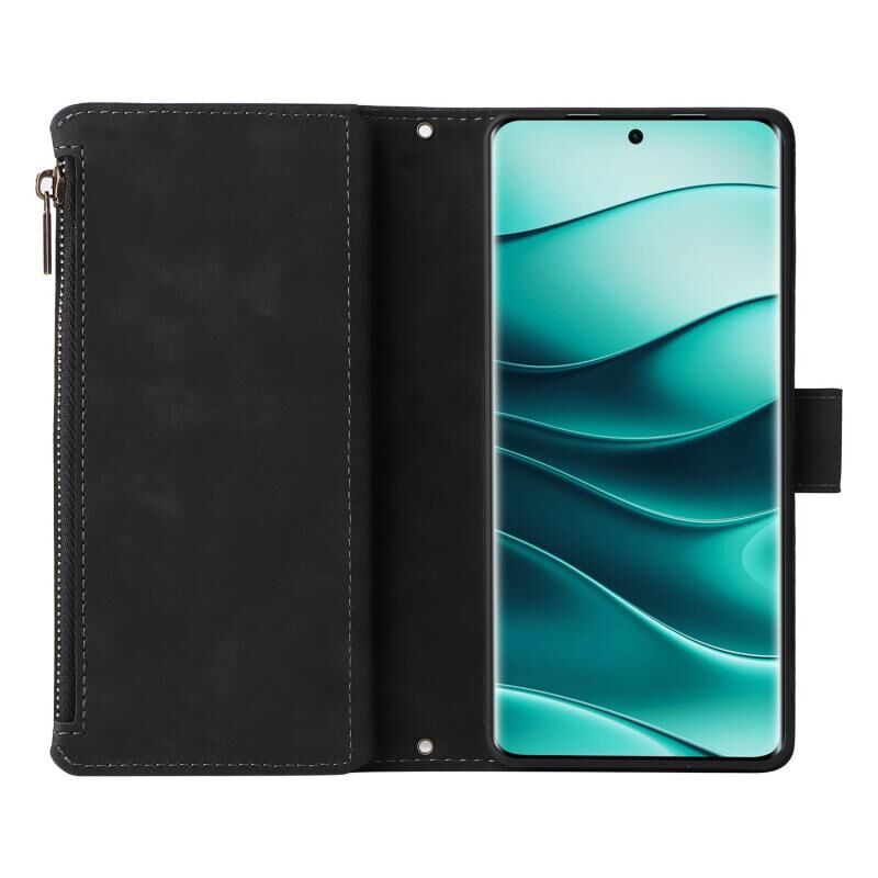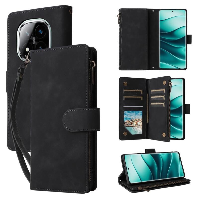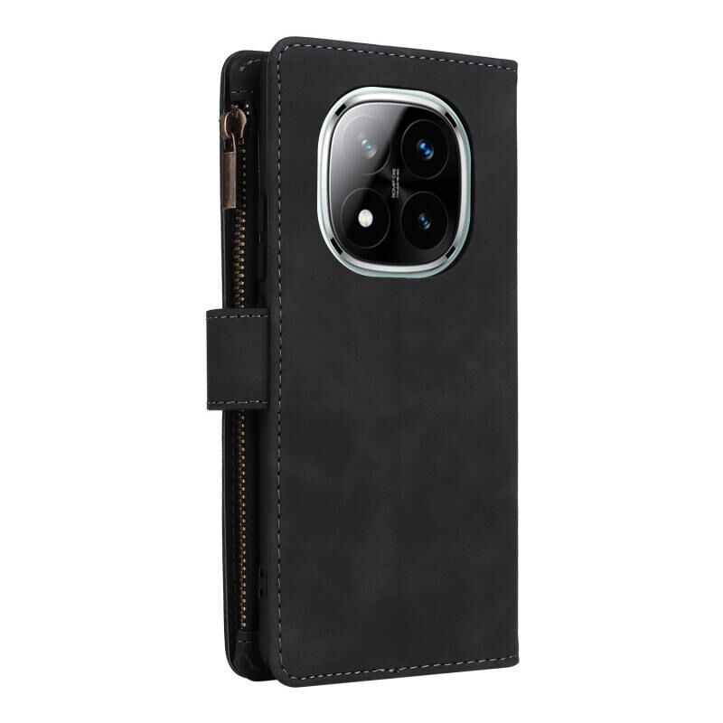For Redmi Note 14 Pro 5G Multifunctional Frosted Zipper Wallet Leather Phone Case(Black)