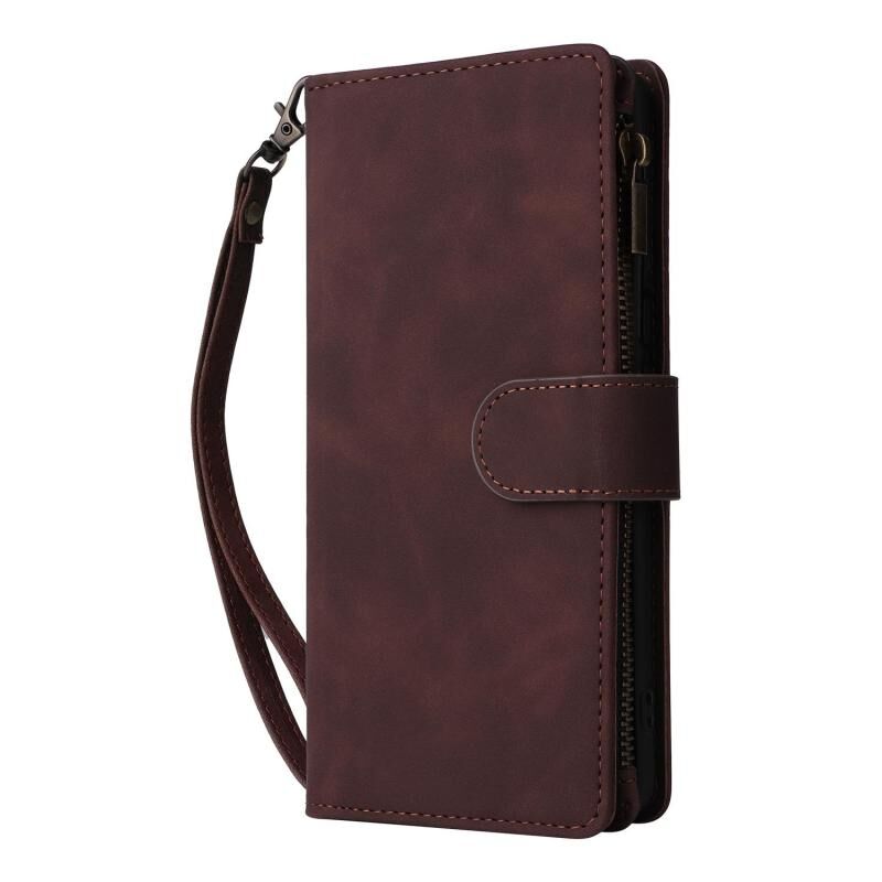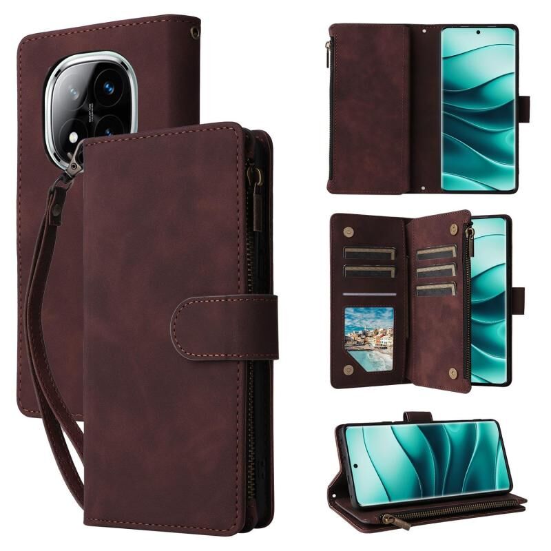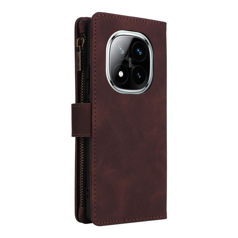 For Redmi Note 14 Pro 5G Multifunctional Frosted Zipper Wallet Leather Phone Case(Coffee)