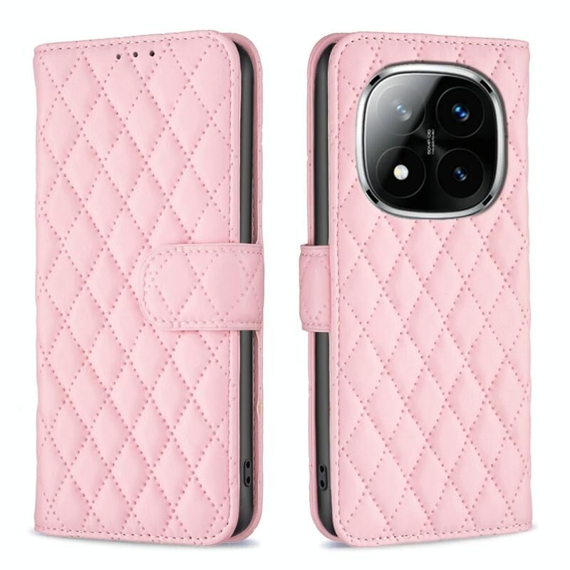 Θήκη τηλεφώνου τύπου πορτοφολιού με δερμάτινη επένδυση και σχέδιο διαμαντένιου πλέγματος για Redmi Note 14 Pro 5G / Note 14 Pro+ 5G (Λευκό)